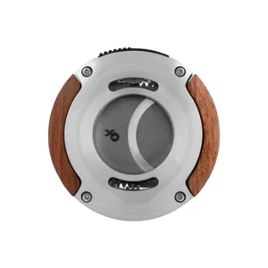 The XO cutter features dual stainless steel blades that operate on a patent-pending planetary gear system, ensuring perfect synchronization for a guided and clean cut every time. Its distinct, round aluminum body is engineered for relentless durability and exceptional performance. Designed to simplify the traditional double guillotine cut, the XO cutter combines innovative engineering with robust construction to deliver a superior cigar cutting experience.