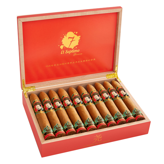 The El Septimo The Emperor Yao Connecticut, presented in elegant boxes of 20 as part of the prestigious Emperor Collection, pays tribute to the legendary Chinese ruler Emperor Yao. This impressive 6 1/2 x 60 torpedo features a smooth Connecticut wrapper over an Ecuadorian binder, with a refined multi-origin filler blend from Nicaragua, Honduras, the Dominican Republic, and Ecuador, creating a balanced and approachable profile.